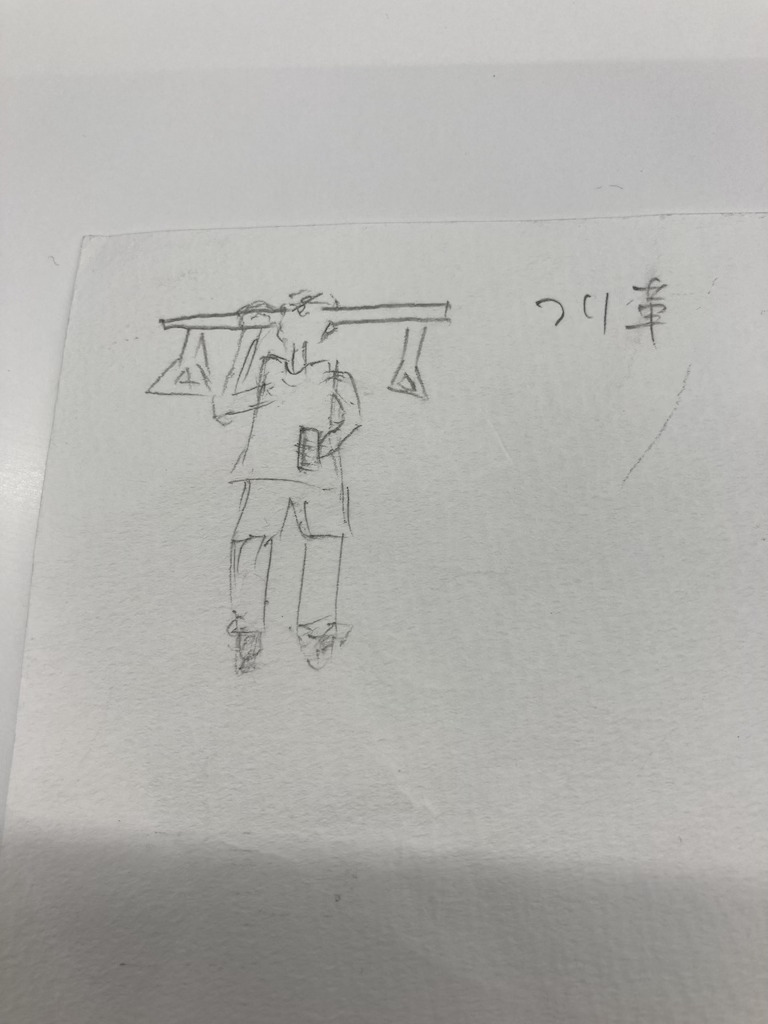 その人の身長は棒を掴むことはできるけど吊り革の方が持ちやすいのになぜそのように鉄の部分を持っていたのか気になった。